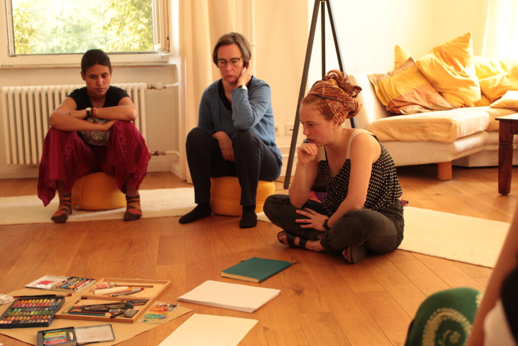 Der Jahrgang 2019 war losgeflogen und nach einem ersten Studienjahr, das geprägt war von vielen Ortswechseln und dem Kennenlernen verschiedener Seminarorte, landete er im Sommer 2020 im Zukunftsdorf Sonnerden in der wunderschönen Rhön. An einem festen Ort anzukommen und dort schließlich auch den Bildungsbau, unser Seminarhaus, zu beziehen, hat viel mit uns und unserem Projekt gemacht. Wir richtetenn uns in Zimmern ein, hatten einen großen Gemeinschaftsraum, Vorräte in der Küche und konnten uns ein Zuhause für die Bildung bauen.
